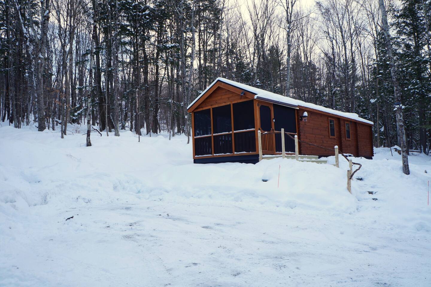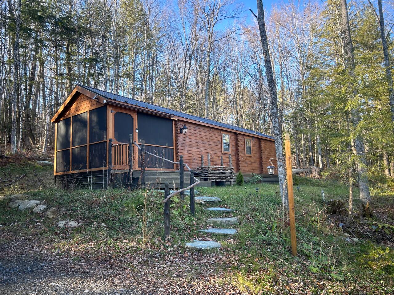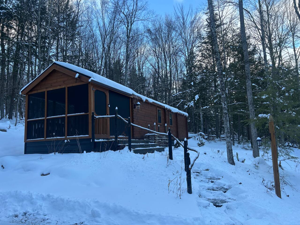 The cabin is accessed via a town-maintained dirt road followed by a short shared private road maintained collectively by neighbors. The roads are easy to navigate in summer and good conditions. In winter (December through March) expect snowpack and occasional icy patches — we strongly recommend AWD or 4WD and snow tires or quality all-season tires. Most guests with appropriate vehicles have no issues. If conditions are severe on arrival day, there is a spot nearby where one car can be left and the cabin reached on foot — roughly a quarter mile uphill walk. Full details are included in your pre-arrival message after booking. During Vermont's mud season (typically late March through early May), dirt roads in Duxbury can become soft and rutted. AWD is again helpful during this period. Parking at the cabin accommodates two cars. Note that in winter, snowpack can make the parking area tight for two vehicles. This is a strictly pet-free property. We maintain this standard to ensure every guest arrives to a clean, hair-free, allergen-free space. We conduct thorough inspections between every stay. Undisclosed pets will result in an additional deep-cleaning fee charged through Airbnb's resolution center and may affect your guest standing. A pack-and-play is available for families with infants — please bring your own crib bedding.